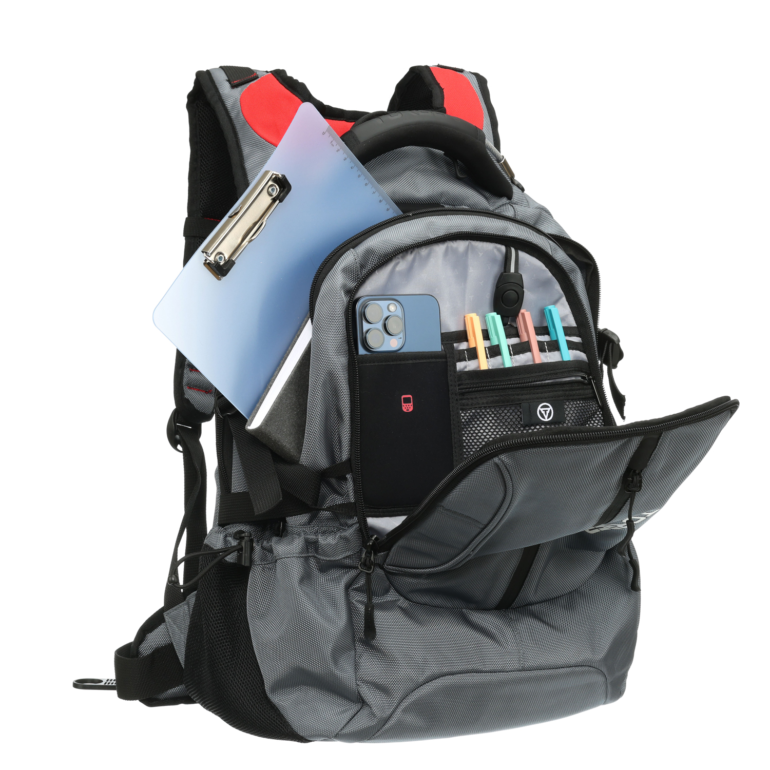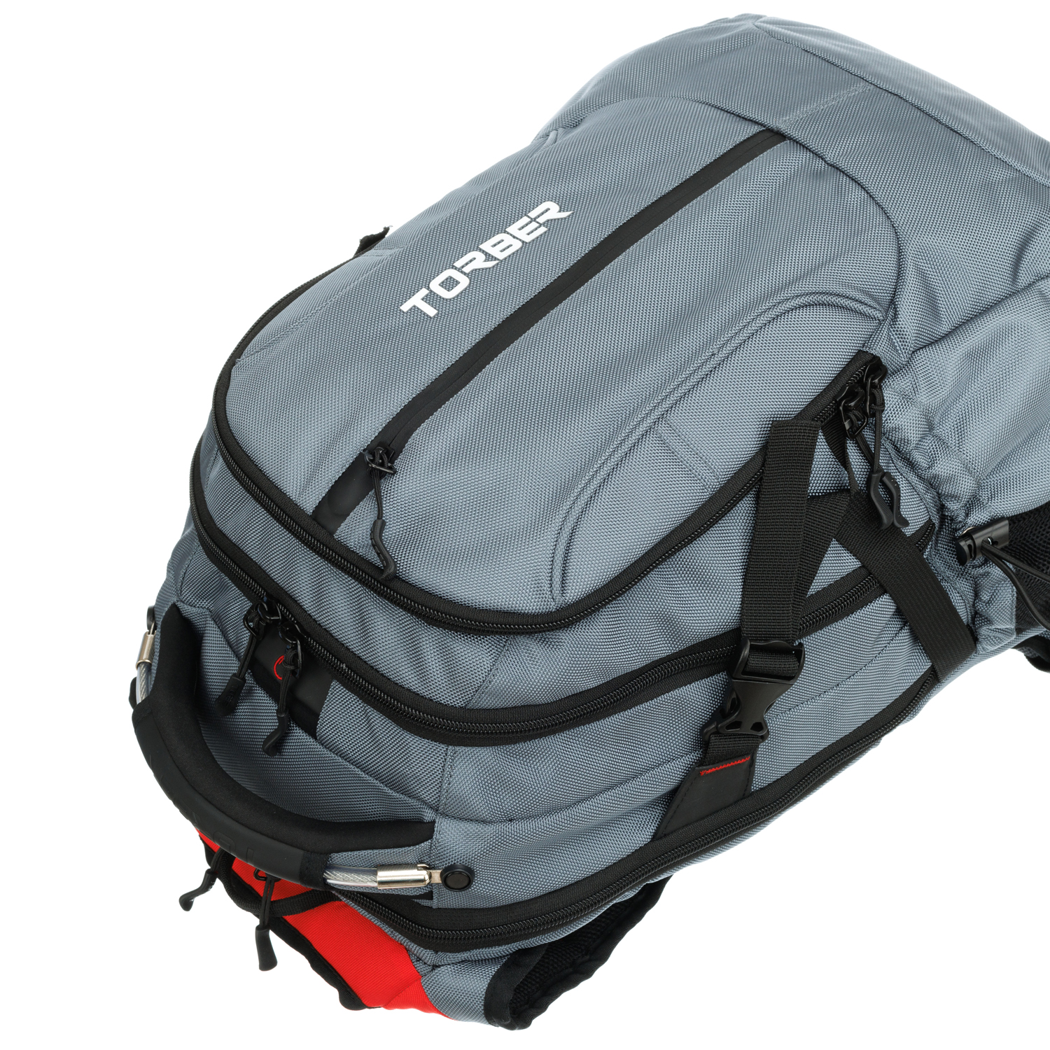 Рюкзак TORBER DRIVE с отделением для ноутбука 15", серый/красный, полиэстер 1680D, 36x17x50 см, 30 л