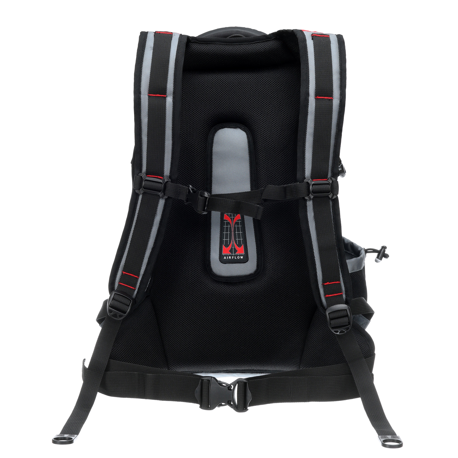 Благодаря боковым карманам, вы можете носить с собой бутылку с водой или зонт. Спинка и ремни оборудованы системой циркуляции воздуха. Карман-органайзер и кольцо для ключей позволят вам упорядоченно хранить большое количество мелких вещей. Усиленная эргономичная ручка с металлическим тросом позволяет носить рюкзак не только на спине, но и в руках, когда это необходимо. Поясной ремень для поддержания рюкзака сделает ношение рюкзака еще более удобным. Рюкзак выполнен в сером цвете с красной отделкой, что делает его универсальным и стильным. Объём 30 л позволяет вместить всё необходимое.