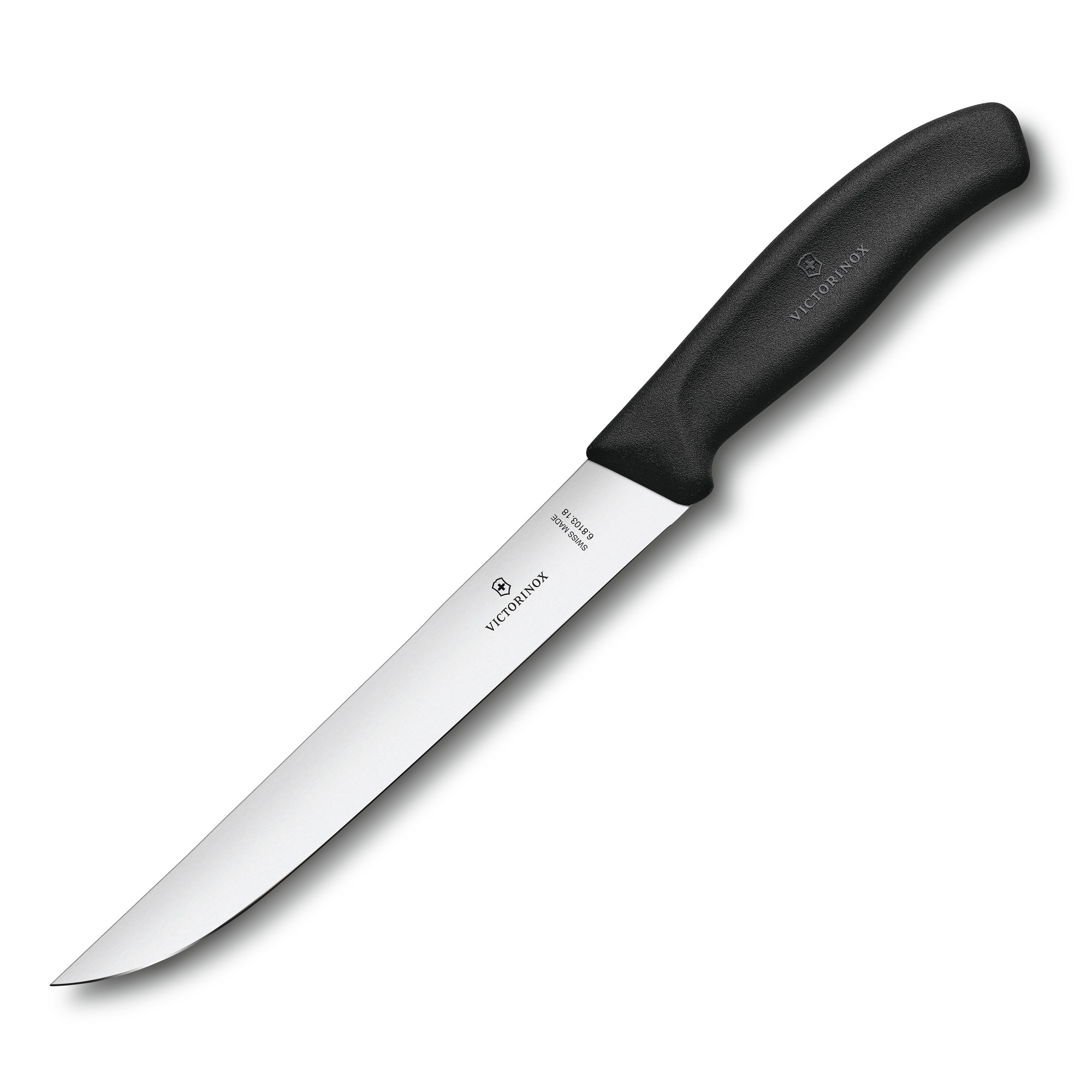 Нож разделочный VICTORINOX Swiss Classic с узким прямым лезвием из нержавеющей стали 18 см и рукоятью из пластика чёрного цвета, в блистере