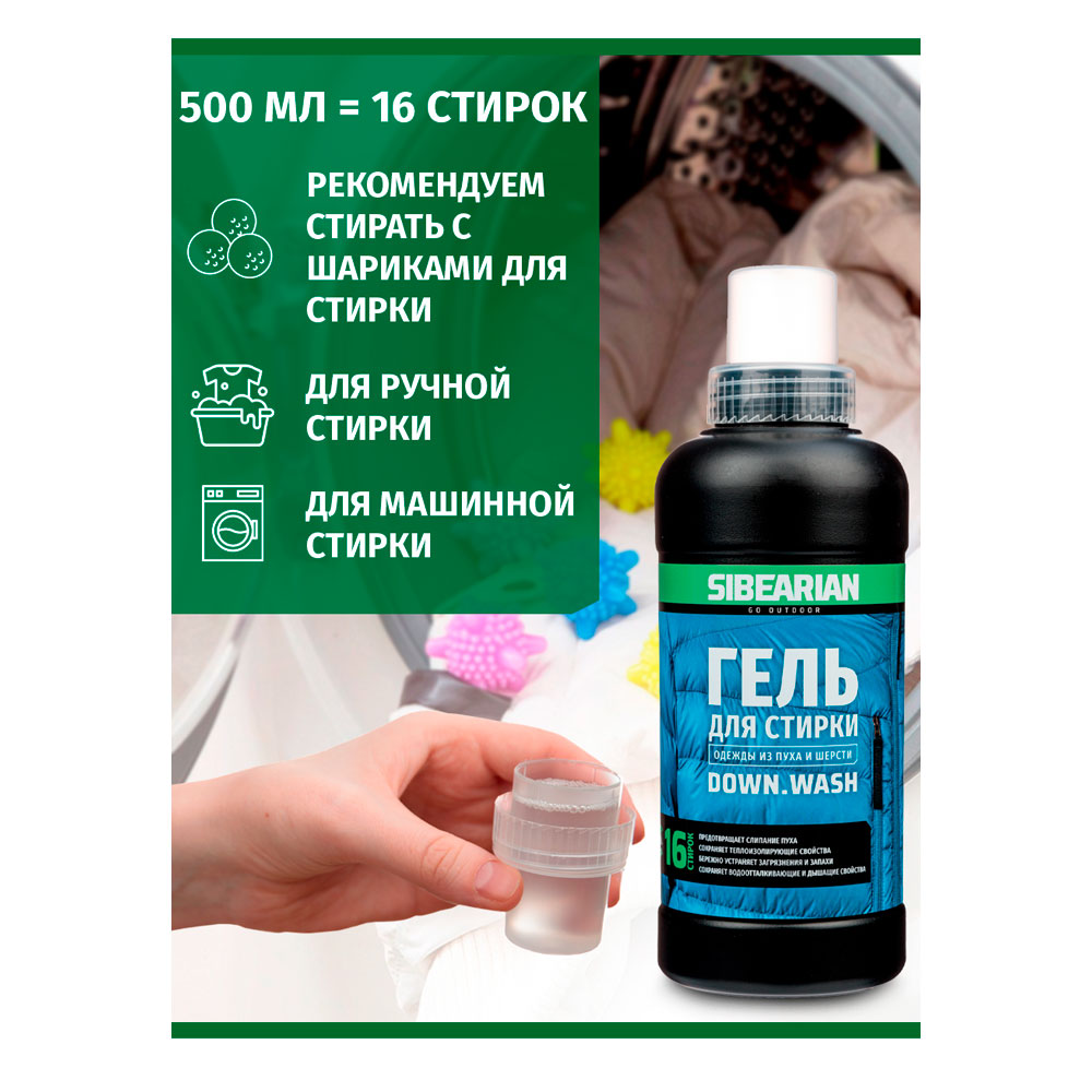 С Sibearian Down Wash ваши пуховики и спальники сохранят свои изначальные свойства, форму и тепло, даже после длительной эксплуатации и регулярных стирок.