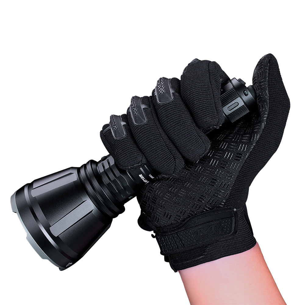 Фонарь выполнен из прочного алюминия A6061-T6 с анодированием, что делает его устойчивым к ударам и повреждениям. Модель защищена от влаги и пыли по стандарту IP68, поэтому выдерживает погружение в воду на глубину до 2 метров. Устройство весит всего 252,7 грамма, что делает его легким и удобным для ношения на охоте — модель не перегрузит снаряжение.