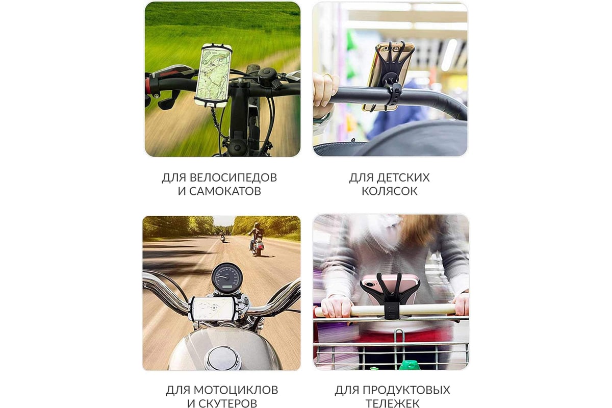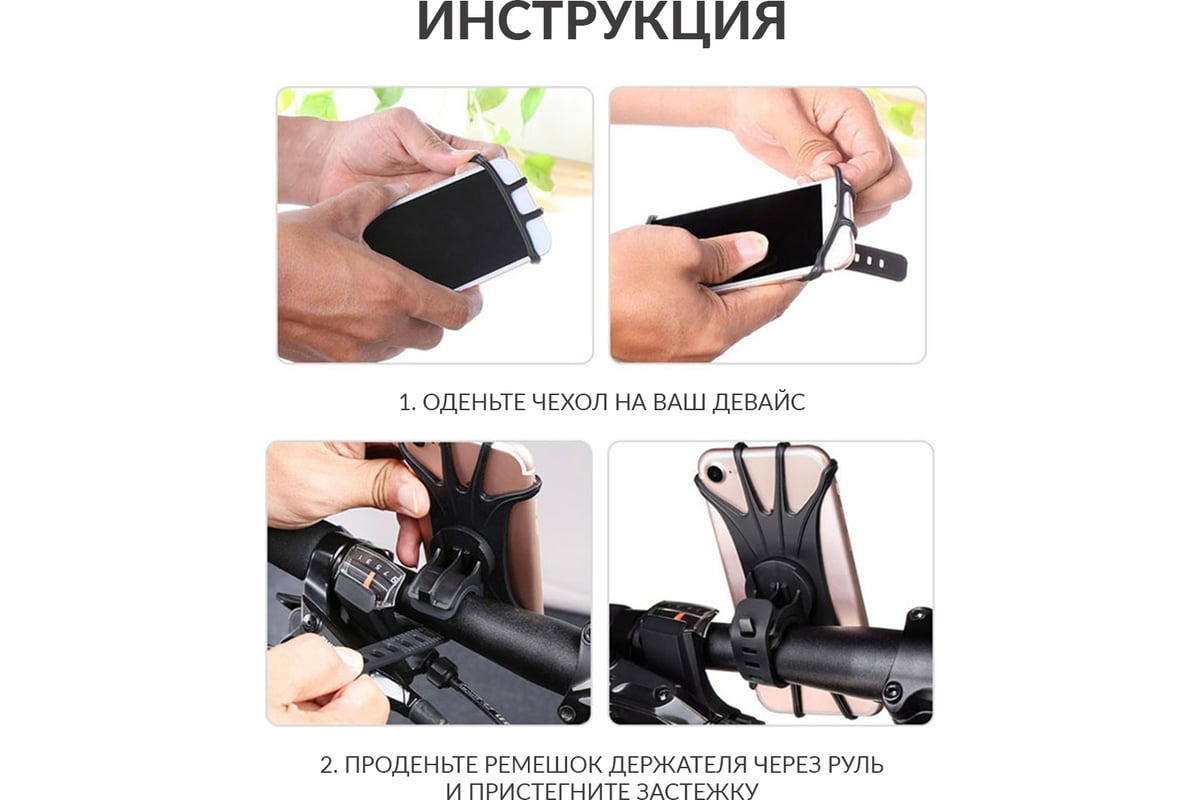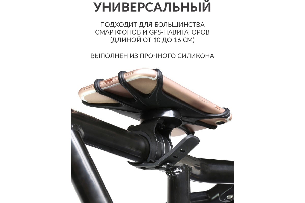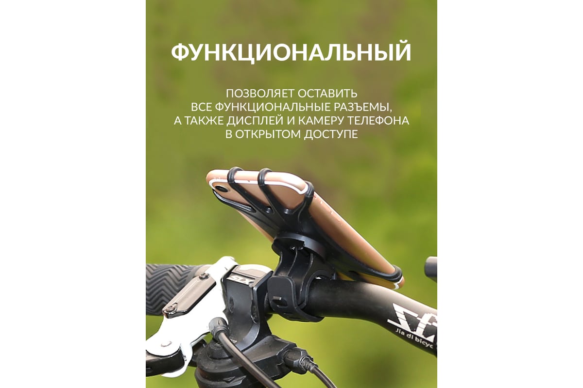 - Модернизированная конструкция держателя обеспечивает надежный обхват руля. При этом, мягкий силикон не поцарапает поверхность велосипеда.