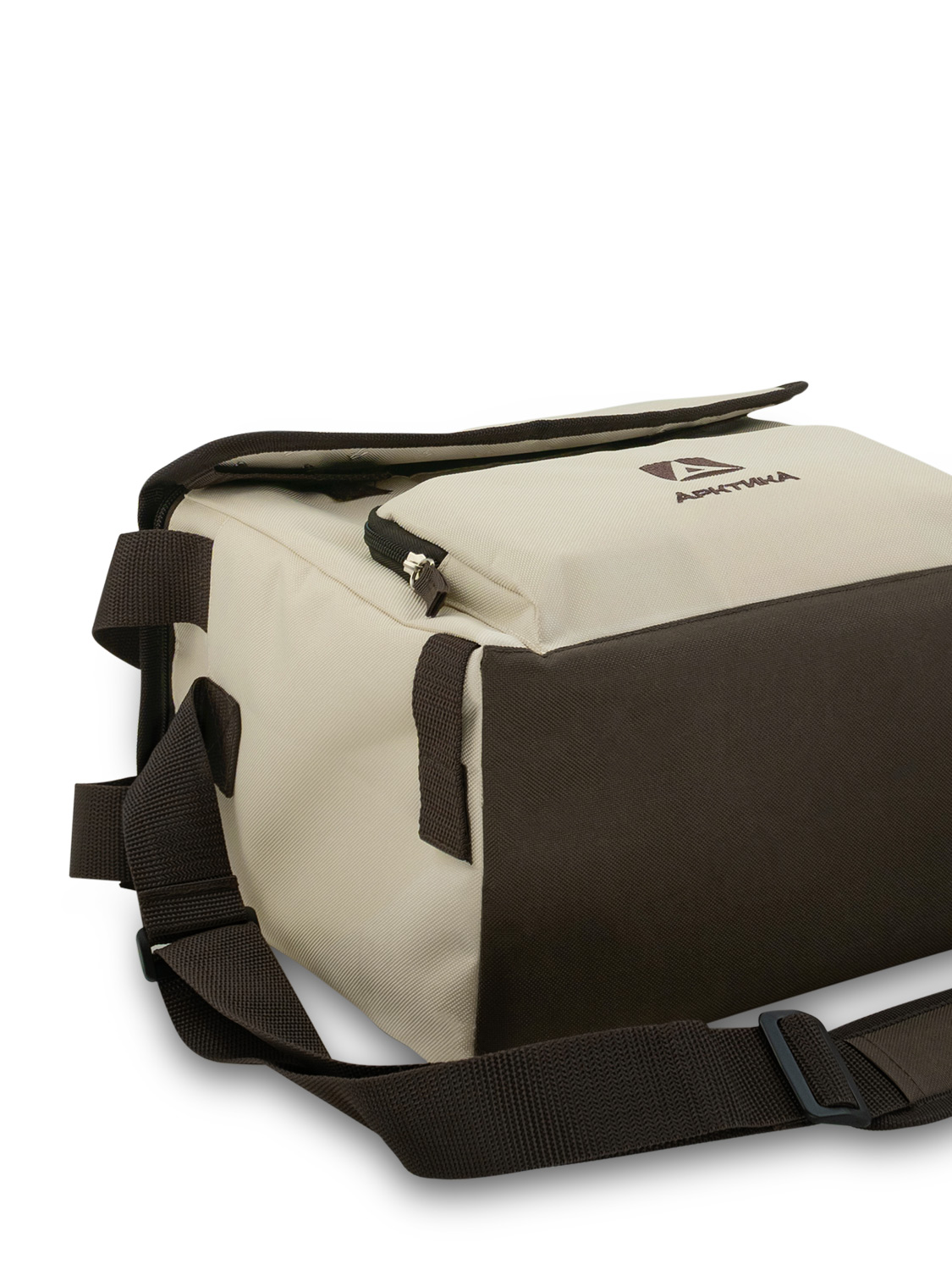 Сумка оборудована прочными ручками и широким ремнем для переноски на плече. Есть наружный вместительный карман для хранения столовых приборов, специй, чая. Объем холодильного отсека — от 10 до 30 л. В сложенном виде не занимает много места. В линейке представлены 2 расцветки на выбор. Рекомендуется использовать вместе с аккумуляторами холода серии АТМ из расчета не менее 10% от объема термосумки. Гарантия – 1 год.