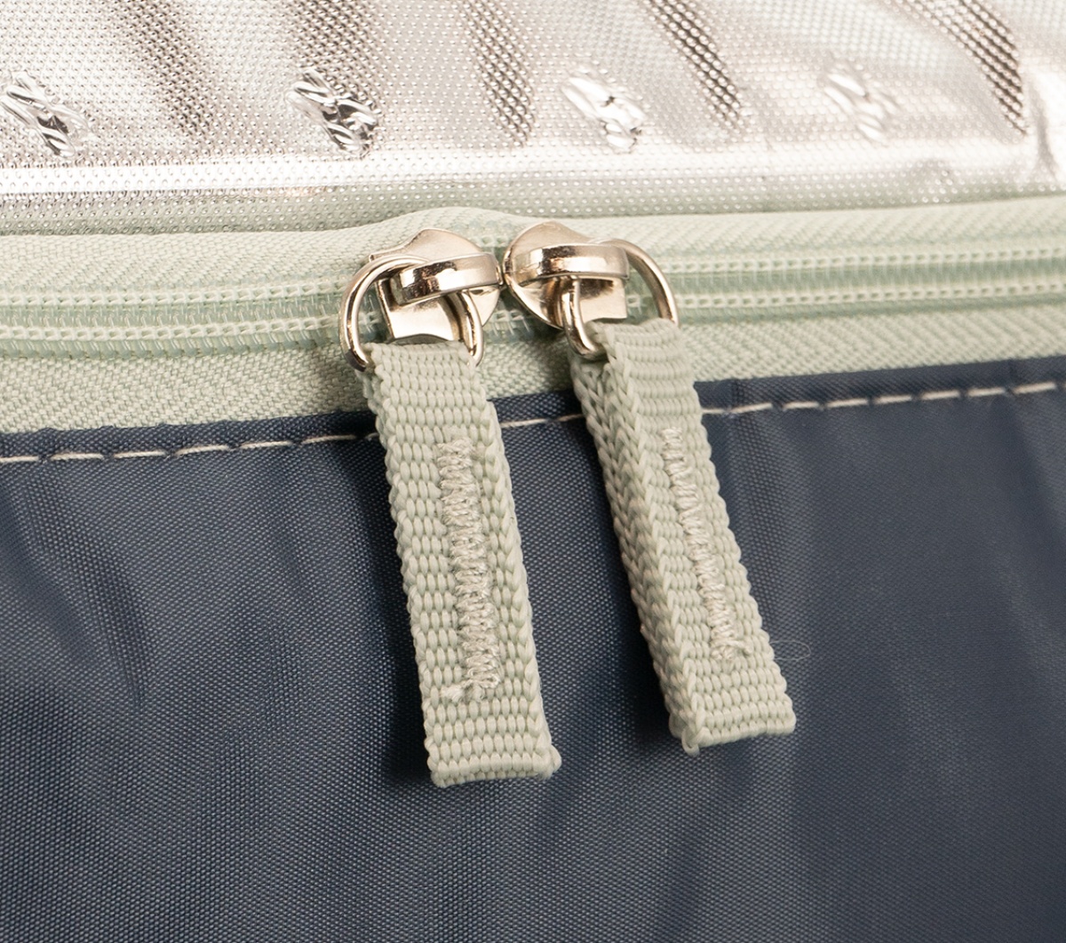 Когда нужно быстро достать что-то из термосумки, не хочется возиться с неудобной застежкой. В обновленной версии нашей классической сумки-холодильника появился второй бегунок — теперь молнию можно открывать с двух сторон и посередине. Это удобно: проще добраться до всего необходимого с любой удобной для вас стороны.