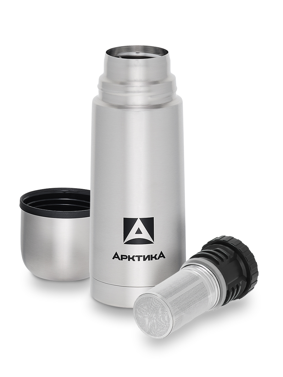 Термос Арктика 101-350С классический с узким горлом с ситечком 0,35 л. (Металлик)