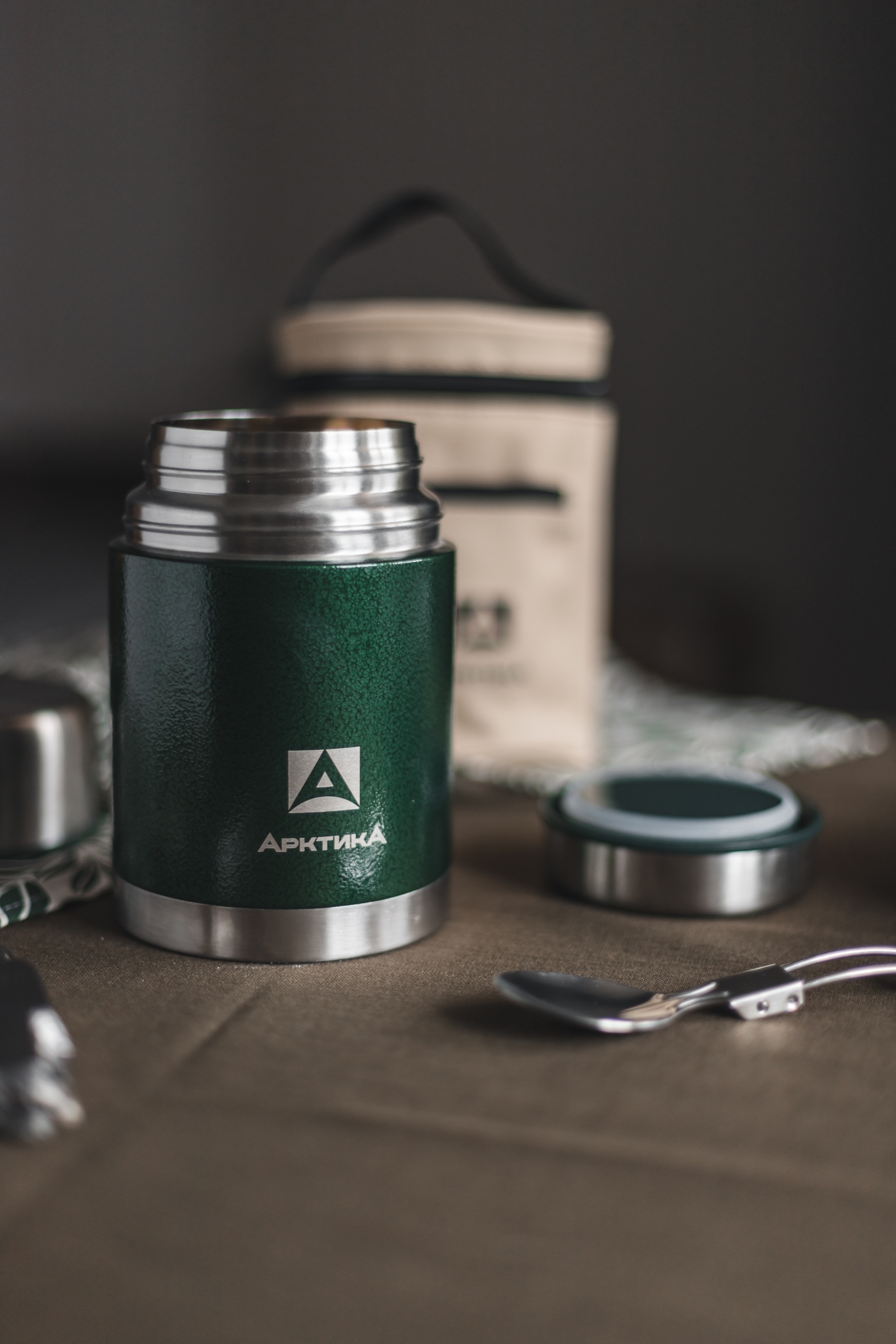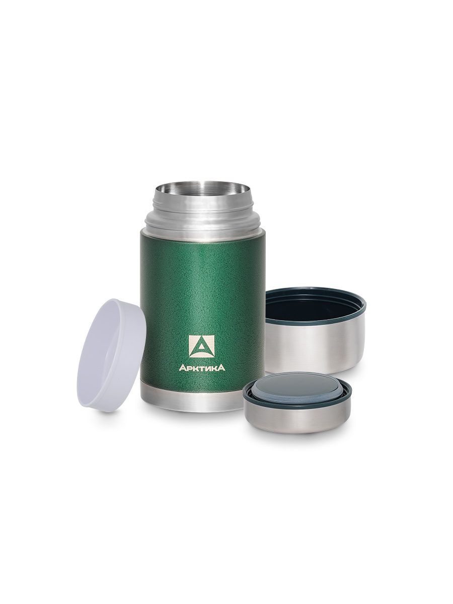 Термос для еды Арктика 306-1000А с супер-широким горлом в чехле, 1 л (Зеленый)