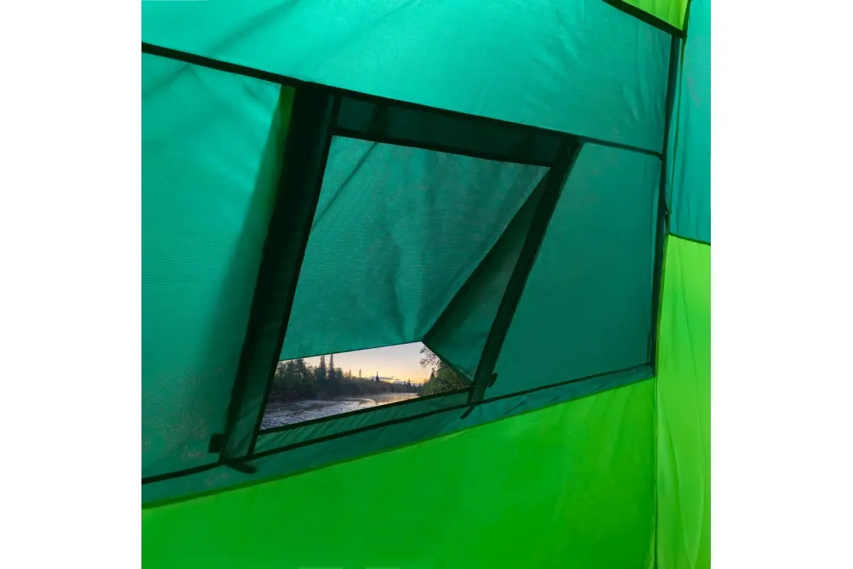 В палатке предусмотрены 4 вентиляционных клапана с возможностью многоуровневой регулировки потока воздуха. Таким образом можно добиться комфортной атмосферы внутри при любых погодных условиях. Вентиляционные клапана так же снабжены москитными сетками. Применяемая москитная сетка очень высокого качества – маркировка B3. Она прочная и в то же время мелкоячеистая, чтобы не пропустить даже самую мелкую мошку.