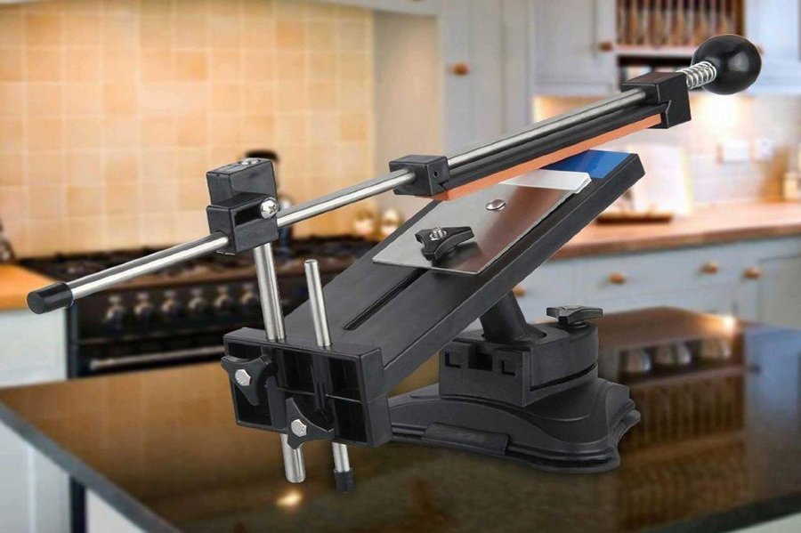 Модель Ruixin RX 002 подходит для заточки самых разных ножей: от кухонных, до охотничьих или туристических. Работает эта точилка и с другими инструментами, а ее основное преимущество — это возможность для пользователей самостоятельно настраивать угол заточки. В комплект входит четыре камня.