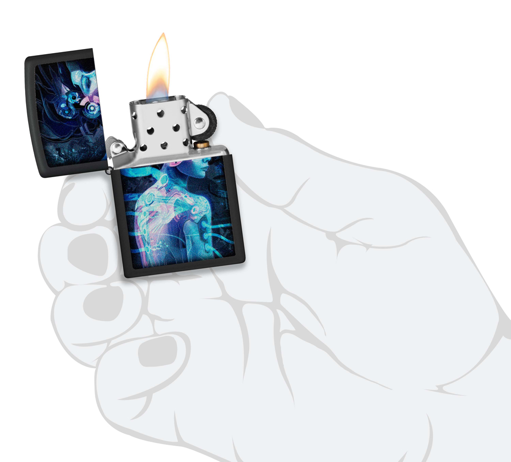 Зажигалка 48517 Cyborg Woman с покрытием Black Light, латунь/сталь, черная, матовая