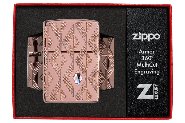 В ювелирном сегменте розовое золото сохраняет за собой позиции законодателя мод и лидера трендов, пользуясь небывалой популярностью у покупателей. Вот и Zippo предлагает этот вариант металлизированного оттенка для популярной серии корпусов Armor, на которые благодаря толстым стенкам превосходно ложатся рисунки, выполненные по технологии глубокого резного оттиска, многогранной гравировки и других техпроцессов для предметов роскоши.