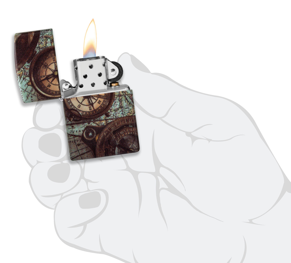 Зажигалка 49916 Compass Design с покрытием 540 Matte, латунь/сталь, разноцветная