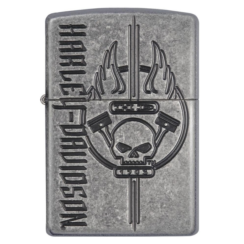 Отделка античное серебро, глубокая гравировка логотипа Harley Davidson