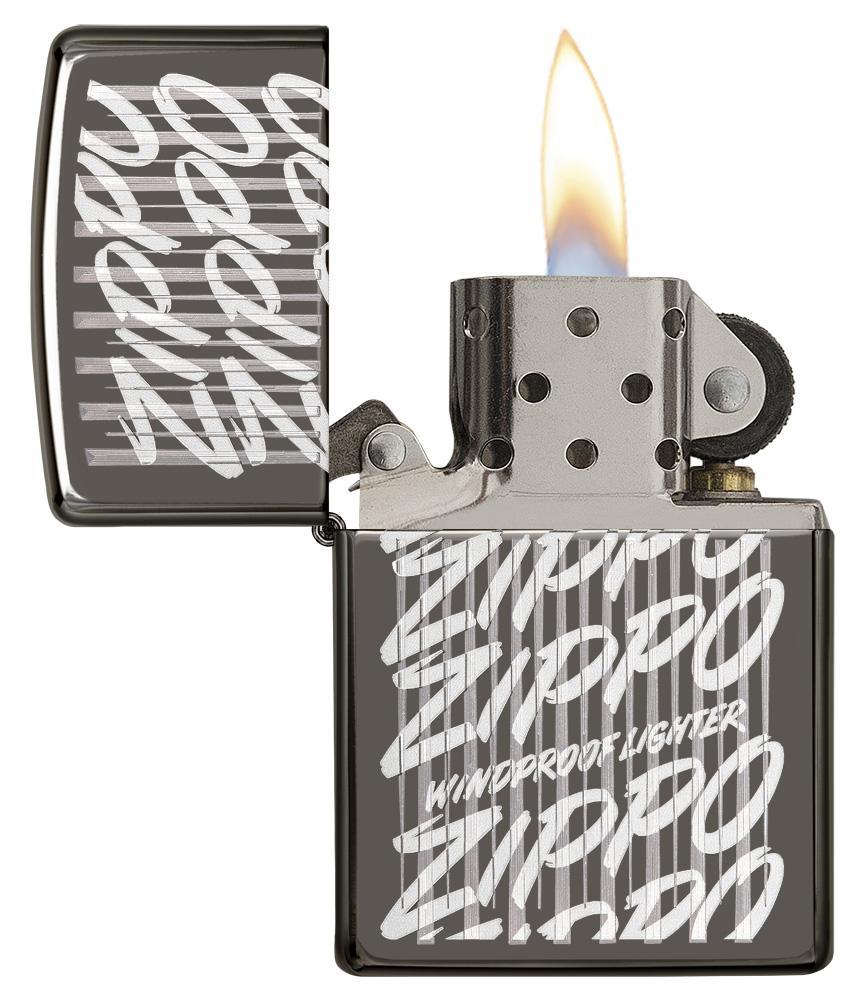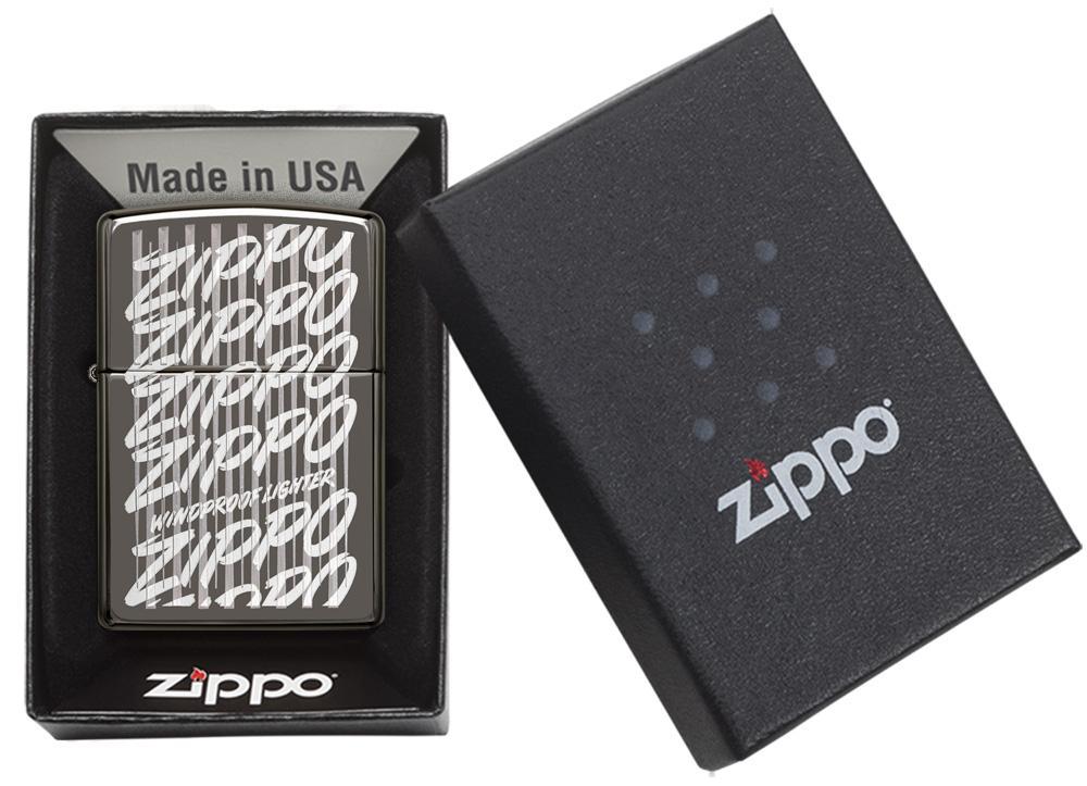 Полированная зажигалка с гравировкой по всей поверхности фирменного логотипа Zippo